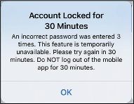 For security purposes if you enter an incorrect password three consecutive times in the mobile app, your account will be locked for 30 minutes. During this time, you will not have access to your Eversense NOW account.